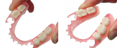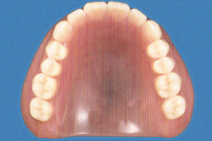 - 弾力性に富むナイロン樹脂で作られており、金具が無いので、ひねってもねじっても滅多なことでは割れません。そのため従来の入れ歯に比べて取り扱いも安心です。