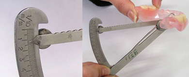 - スマイルデンチャーは薄く、歯肉から床への移行部分が自然なため、一目では入れ歯であると区別がつきにくいのが特徴です。床辺縁でおおよそ1.2mm〜1.5mmです。