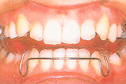 - 矯正装置に食物が溜まりやすく、また、歯が磨きにくくなるため、虫歯や歯周病が生じるリスクが高まります。したがってハミガキを適切に行ってください。